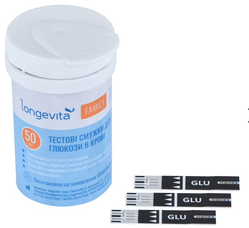 Тест-смужки для вимірювання глюкози в крові 50шт LONGEVITA Family