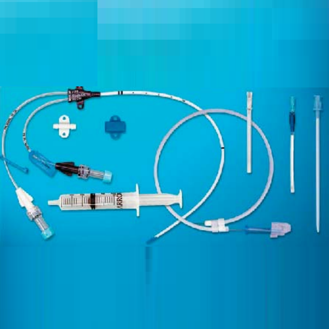 Катетери ARROWg + ard, просочені двома антисептиками: сульфадіазином срібла і хлоргексидином, ефективно пригнічують колонізацію катетера бактеріями і запобігають розвитку катетер-асоційованої інфекції. Механізм антибактеріальної дії складу ARROWg + ard пов’язаний з посиленням проникності клітинної стінки бактерій, під впливом хлоргексидину і блокуванням реплікації ДНК мікроорганізмів іонами срібла. Останні дослідження показали, що катетери ARROWg + ard запобігають колонізації катетера і ризику розвитку інфекції за рахунок інгібування утворення відкладень фібрину на стінці катетера і зниження адгезивної здатності мікроорганізмів. Катетери ARROWg + ard проявляють виражену антибактеріальну активність відносно більшості збудників катетер-асоційованих інфекцій. Антимікробна активність ARROWg + ard зберігається протягом 520 годин (близько трьох тижнів). Клінічні випробування продемонстрували, що катетери ARROWg + ard мають удвічі меншу ймовірність бути колонізованими бактеріями в порівнянні з контрольною групою і вчетверо меншу ймовірність стати причиною бактеремії, пов’язаної з катетеризацією. (катетер 7Fr.x20см, наконечник ковпачки на ін’єкційних портах, провідник 0,81ммx45см, шприц 5 мл, пробник тиску, голка 18Ga.x6,35см, фіксатор катетеру, судинний розширювач, зажим для катетеру)