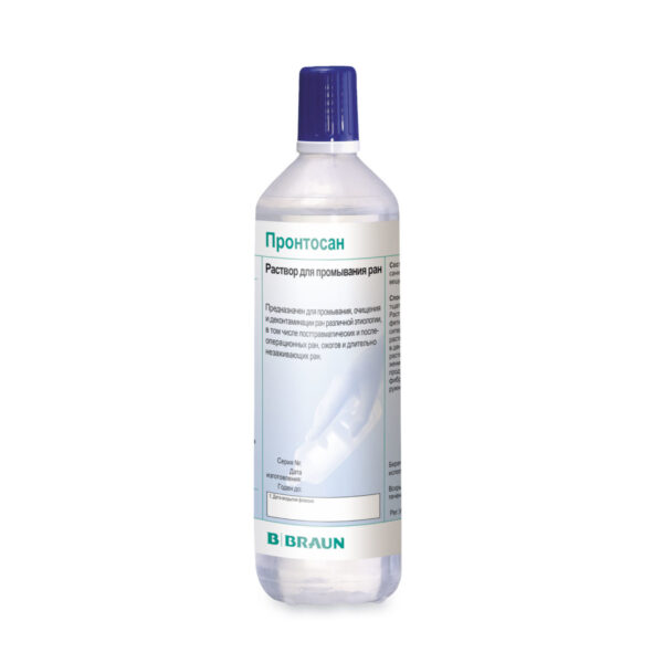 Поверхню рани необхідно ретельно промити розчином Пронтосан або обробити тампоном, рясно змоченим в розчині Пронтосана. Для ефективного раневого загоєння в першу чергу необхідно ретельно очистити рану від некротичних тканин, фібрину і біоплівок (полісахаридних структур, утворених бактеріями). Очищення рани ліквідує середу для розмноження бактерій і створює передумови для її швидкого загоєння. З метою зниження ризику занесення в рану патогенної мікрофлори рекомендується обробка максимально більшої області шкіри або слизової оболонки навколо рани. Змочені розчином Пронтосана марлеві серветки можуть бути залишені на рані на 15 хв або до наступної перев’язки в залежності від ситуації. Розчин можна використовувати для промивання ранових порожнин через дренажні системи. Якщо пов’язки присихають до поверхні рани, їх рясно змочують розчином Пронтосана до повного зволоження, поки вони не будуть легко зніматися. В такому випадку поверхня рани, грануляційна тканина, клітини епітелію не ушкоджуються. При необхідності розчин Пронтосан може бути підігрітий до температури тіла безпосередньо перед його застосуванням.
