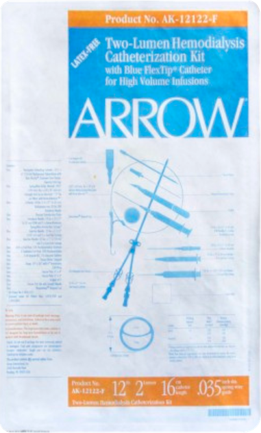 Набір з катетером для гемодіалізу, катетер 12Fr. x 16 см, двуканальний,переріз C 12/12