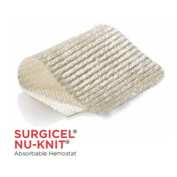 При пораненні печінки та селезінки складений гемостатик Surgicel Nu Knit може використовуватися для виконання дефекту з подальшим обгортанням органу. Тканина гемостатика може бути підшита до капсули органу.