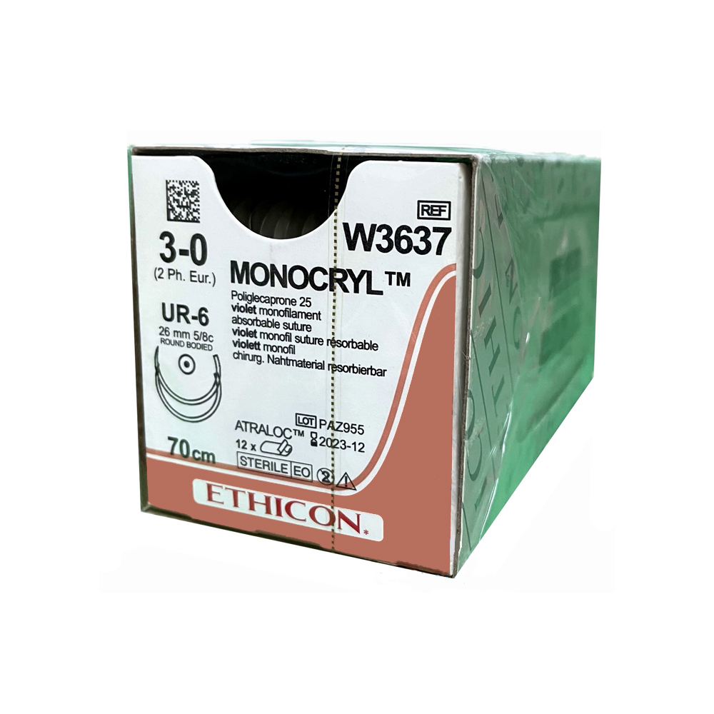 Монокріл 3-0, дві колючі голки 26 мм, 5/8 кола, довжина 70см, фіолет
