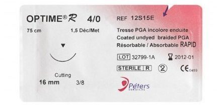 Нитка, що розсмоктується,OPTIME R 4/0 3/8 T16 T19 75CM