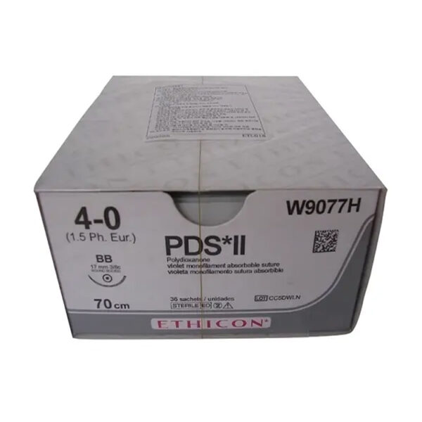 ПДС II – синтетична мононитка, що розсмоктується, яка забезпечує підтримку тканин на термін більше 6-ти тижнів. Застосовується для апроксимації тканин і в ситуаціях, що вимагають тривалого терміну підтримки, в тому числі для з’єднання м’язових фасцій і апоневрозів, сухожиль. Також ПДС II призначена для шва шкіри і товстого кишечника в ослаблених пацієнтів з уповільненими строками загоєння ран (наприклад, після хіміотерапії). Може застосовуватися для зшивання серцево-судинних тканин, які підлягають подальшому зростанню, у дітей, а також в очній хірургії. Властивості: монофіламентна нитка – забезпечує нетравматичне проходження через тканини; синтетична нитка – мінімальна тканинна реакція; матеріал, що розсмоктується – розсмоктування відбувається шляхом гідролізу, повна абсорбція матеріалу відбувається між 180-ою і 210-ою добою; міцність на розрив; колір – фіолетовий або незабарвлений; товщина нитки – варіюється від 7/0 до 2 (USP), поставляється як нитки з голкою; стерилізація – оксидом етилену.