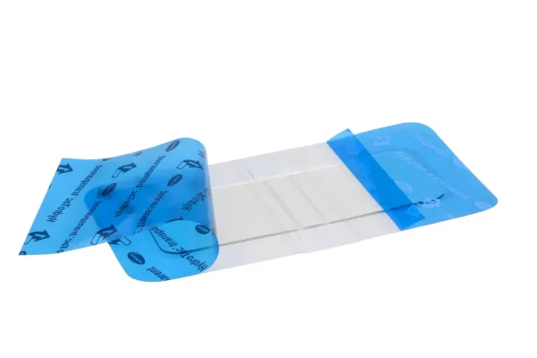 Підберіть розмір пов’язки HydroTac® transparent так, щоб її краї виходили за межі рани на 1-2 см. За необхідності, пов’язку можна обрізати стерильними ножицями до потрібних розмірів. Для накладання зніміть захисний синій шар, відповідно до вказаних етапів (1 і 2), після чого прикладіть пов’язку до рани гелевою стороною. Після цього видаліть верхній захисний шар (3 і 4). Можна залишати пов’язку на рані до 7 днів. Для заміни пов’язки обережно підніміть один край і зніміть її.