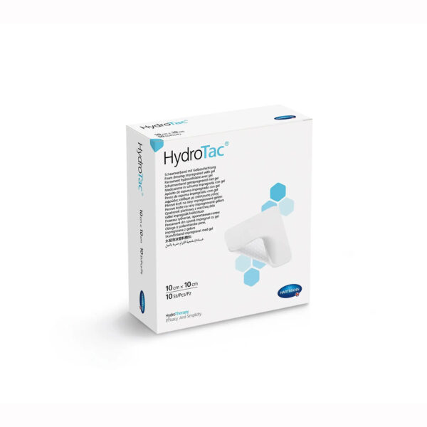 Пов’язка Hydrotac від Hartmann виконується з полімерного матеріалу на основі суміші поліуретану і полісечовини. В результаті виходить губчастий матеріал, що містить пропіленгліколь, з високим рівнем повітропроникності і абсорбції. Завдяки цим властивостям пов’язка Hydrotac відмінно поглинає ексудат з помірно та слабо ексудуючих ран. Щільність пов’язки достатня для того, щоб перешкоджати проникненню бактеріальної інфекції із зовнішнього середовища. Зовнішній поліуретановий шар пов’язки Hydrotac не пропускає також і рідину, однак не заважає повітряним потокам проникати під пов’язку і вентилювати рану. З внутрішньої сторони перев’язувальний матеріал Hydrotac покритий гідрогелем, який зберігає вологу середу при контакті з раною, а це значить, що Hydrotac не прилипає до пошкодженої поверхні і легко видаляється при необхідності заміни.