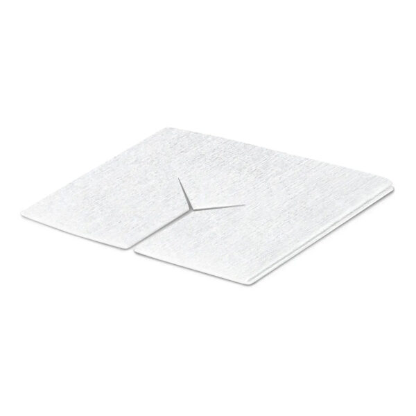 М’які та добре вентильовані шестишарові стерильні сорбційні серветки зі спеціальним розрізом для зручного накладання навколо дренажів і трубок. Виготовлені з нетканого матеріалу, що містить 70% віскозних та 30% поліестерних волокон. Не містять оптичних відбілювачів чи зв’язувальних компонентів.