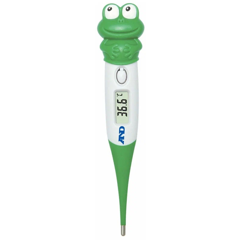 Термометр A&D DT-624 є приладом, призначеним спеціально для вимірювання температури тіла у дітей віком від 3-х років. Його відрізняє оригінальний дизайн, а саме тримач у формі жабеня. Цей вигляд тримача надає термометру додаткової привабливості та робить його використання більш захоплюючим для дітей.