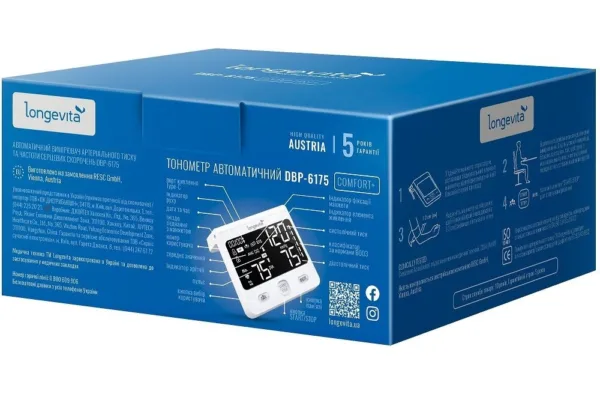 Longevita DBP-6175 Comfort+ — це ідеальний вибір для домашнього використання та професійних медичних установ, що гарантує точність, зручність і функціональність.