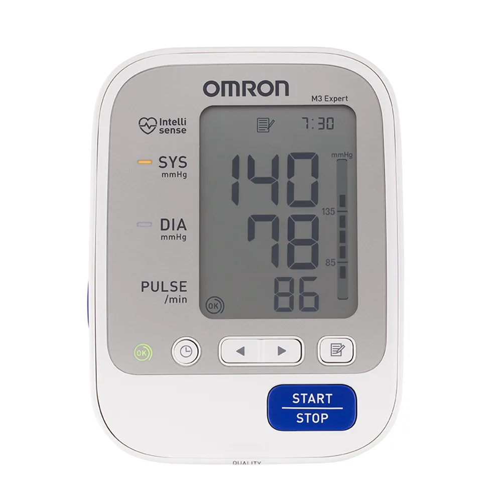 Безумовна якість техніки OMRON (Омрон) підтверджено згідно Європейським вказівкам з медичного обладнання та Международними актами клінічних перевірок. У всьому світі 50% продажів тонометрів припадають на тонометри OMRON (Омрон), вони є просто зразками бездоганної якості. Одним з таких є OMRON M3 Expert (Омрон М3 Експерт). Апарат обладнаний вбудованою пам’яттю на 100 вимірювань з обов’язковою функцією реєстрації часу і дати кожного вимірювання і світловим (помаранчевим) індикатором підвищеного артеріального тиску. Необхідно зазначити, що тонометр забезпечений новітніми індикаторами руху і правильного фіксування манжети й обчисленням середнього показника вимірювання за останні 10 хвилин.