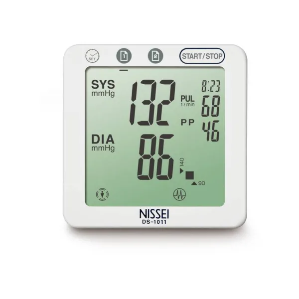 Вимірювання тиску під час накачування манжети підвищує комфорт при використанні тонометра, знижує навантаження на судини і підвищує точність показань тонометра. Ця функція також дуже важлива для людей, у яких тиск знижений: звичайне вимірювання тиску означає накачування манжети до 150-180 мм рт. ст. і плавне зниження до моменту визначення систолічного тиску. Тонометр DS-1011 спочатку визначає діастолічний тиск і продовжує нагнітати повітря в манжету до моменту визначення діастолічного тиску. При цьому прилад використовує алгоритм адаптації, тобто підлаштовується до користувача. Алгоритм адаптації на основі результатів вимірювання робить вимірювання тиску більш точним і швидким. Тонометр підлаштовує процес вимірювання на основі даних останніх трьох вимірів: частоти пульсу, верхнього та нижнього тиску, наявності аритмії. Два банки пам’яті дозволяють приладу зберігати дані двох користувачів відразу, а гостьовий режим не вносить змін у дані користувача. Робота алгоритму повністю автоматична і не викликає складнощів при використанні тонометра. Визначення перешкод вимірювання також є новітньою функцією тонометрів NISSEI. Це особливий алгоритм, який реєструє фактори, які могли вплинути на точність показань приладу. Якщо користувач рухався під час вимірювання, розмовляв, неправильно закріпив манжету або не дотримувався правила вимірювання артеріального тиску, то тонометр DS-1011 сигналізує про це.