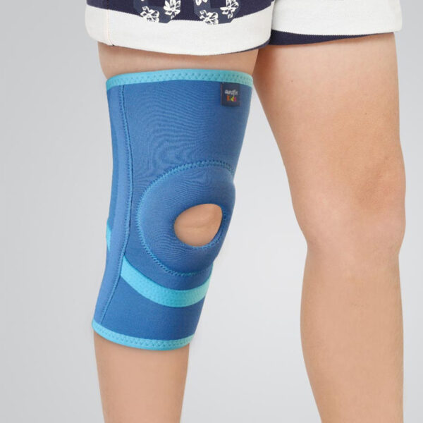Колінна чашечка відкрита, підтримується силіконовим кільцем по периметру. Фіксація колінного суглоба здійснюється за рахунок спіральних ребер жорсткості. Вони обмежують патологічні бічні рухи, знижують ударне навантаження. Виріб розроблений спеціально для дітей з дотриманням міжнародних медичних стандартів.