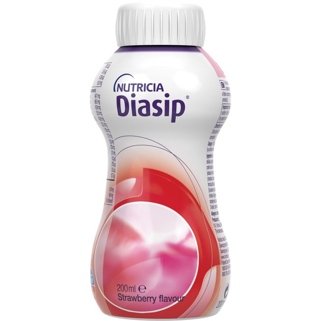 Спеціалізований харчовий продукт для медичних потреб – ентеральне харчування Diasip зі смаком полуниці розроблений для підтримки дієтичного режиму при нутритивній недостатності (мальнутриції) у дітей від трьох років та дорослих з цукровим діабетом або підвищеним рівнем глюкози в крові. Продукт включає в себе харчові волокна, цукри та підсолоджувачі.
